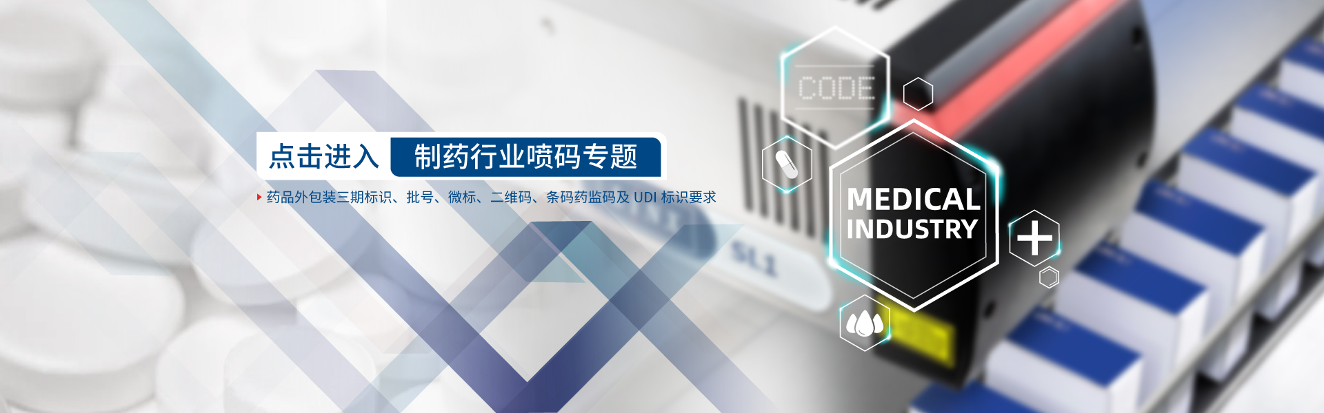 醫(yī)藥行業(yè)全面推行GMP認(rèn)證,對(duì)于各種噴碼機(jī)設(shè)備以及包裝材料都有非常嚴(yán)格的標(biāo)準(zhǔn),對(duì)于藥品的包裝要求高速潔凈。